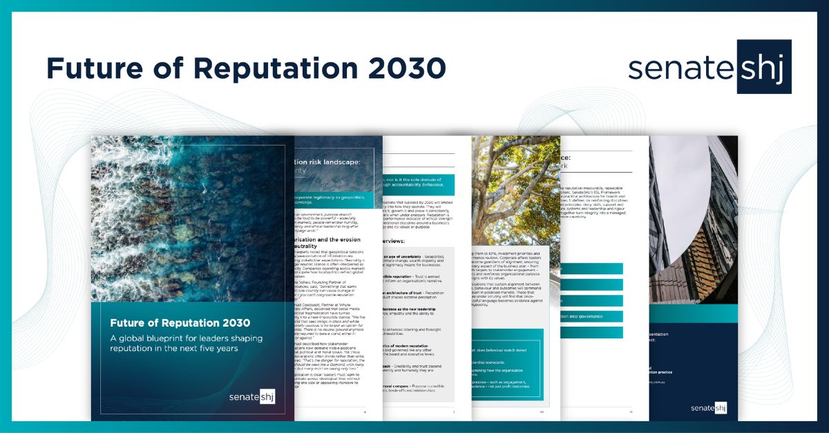 A new global report from SenateSHJ, The Future of Reputation 2030, outlines why boards and executive teams must radically rethink how they build, protect and measure organisational reputation. Based on interviews with 44 senior reputation and corporate affairs leaders around the world - including 11 PROI Worldwide members - the report makes clear that reputation is no longer a perception exercise. It has become a performance system shaped by behaviour, culture, data, risk and the quality of leadership decisions made under pressure.