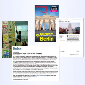 Crenshaw Communications and fischerAppelt realised pre-event PR activities to draw attention to the Berlin Days, including a promotional partnership with TIME OUT New York, live coverage in CBS national morning show (3.4 million viewers) and a press event at the launch of the public “Bricks to Berlin” project.